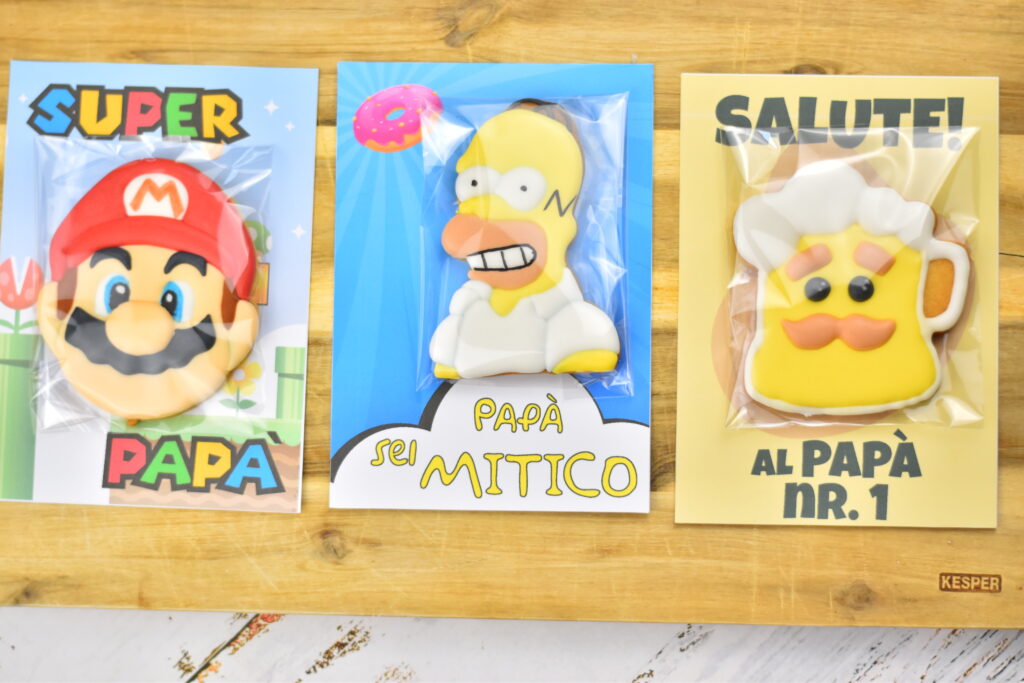 Per la Festa del Papà ho creato alcune proposte speciali a base di biscotti decorati, pensate come piccoli regali personalizzati da consegnare con un messaggio..