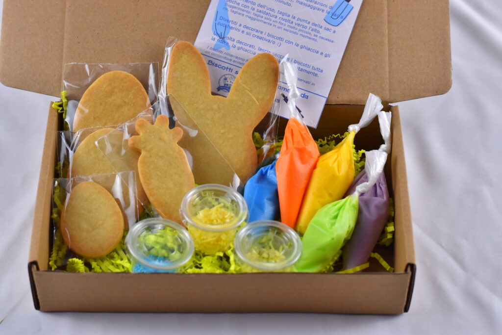 I biscotti vengono preparati e confezionati con cura, pronti da regalare.